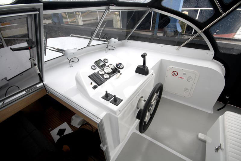 De keuken bevindt zich in de ruime, lichte salon, waar je door de grote ramen volop kunt genieten van het uitzicht op het water. Dankzij het slimme ontwerp voelt het schip bijzonder ruim aan, met voldoende opbergruimte voor langere reizen.